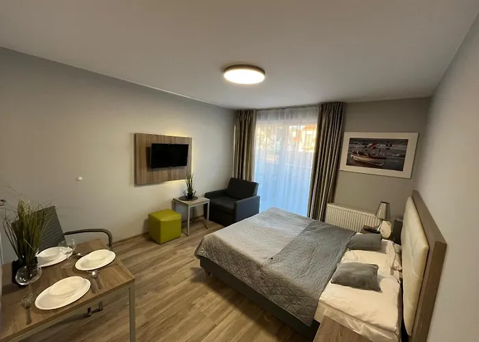 Gasten die in Bursztyn Seaside Apartment W Niechorzu verblijven, kunnen profiteren van voorzieningen, zoals een kitchenette, evenals een eetgedeelte. De dichtstbijzijnde Niechorze bushalte ligt op een korte afstand van de 1-badkamer accommodatie. Geniet van uw verblijf op een terras.